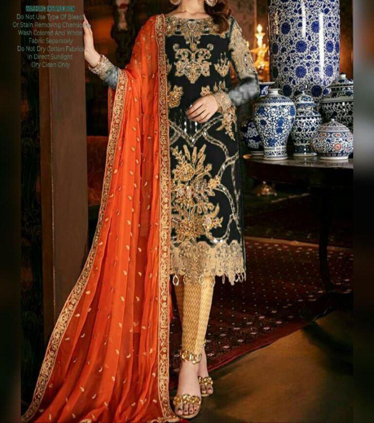Front Fully Embroidered With Handwork And Mirror Work On Fabric And Daman Embroidered Patch