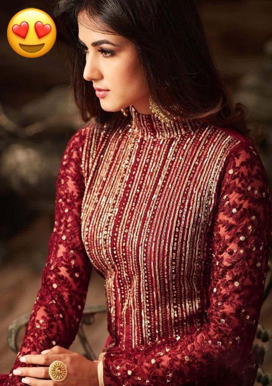 Front Heavy sequence n zari embroidery on chiffon stuff
