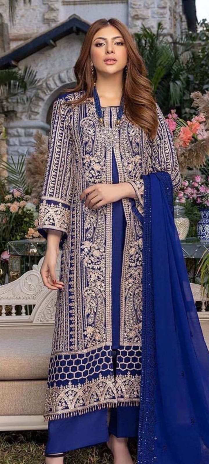 •Semi Pure Chiffon Sequence Embroidered Front